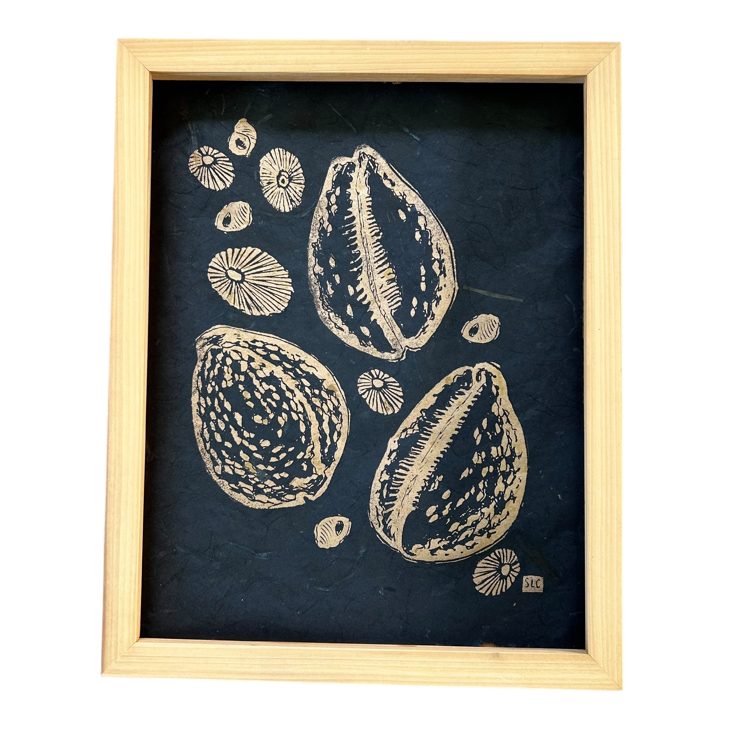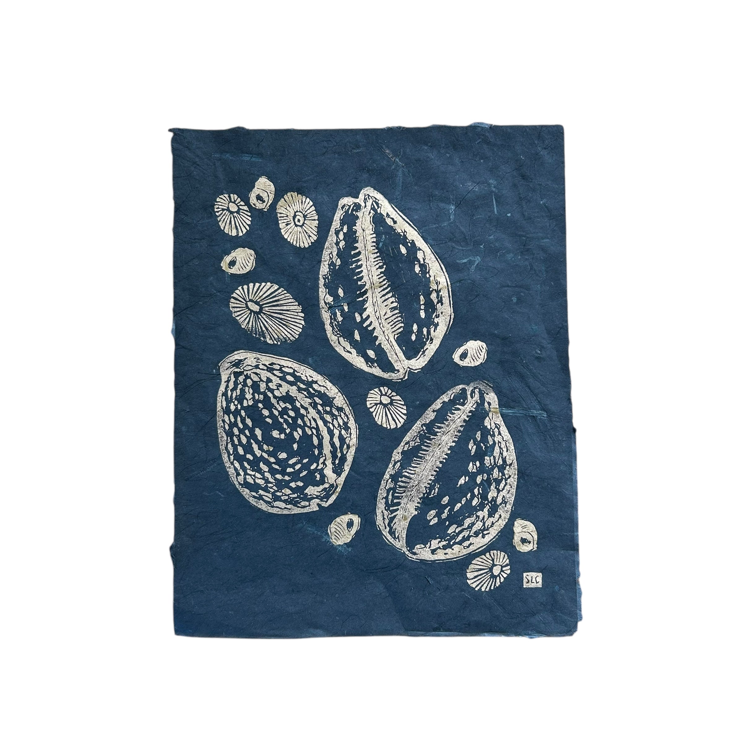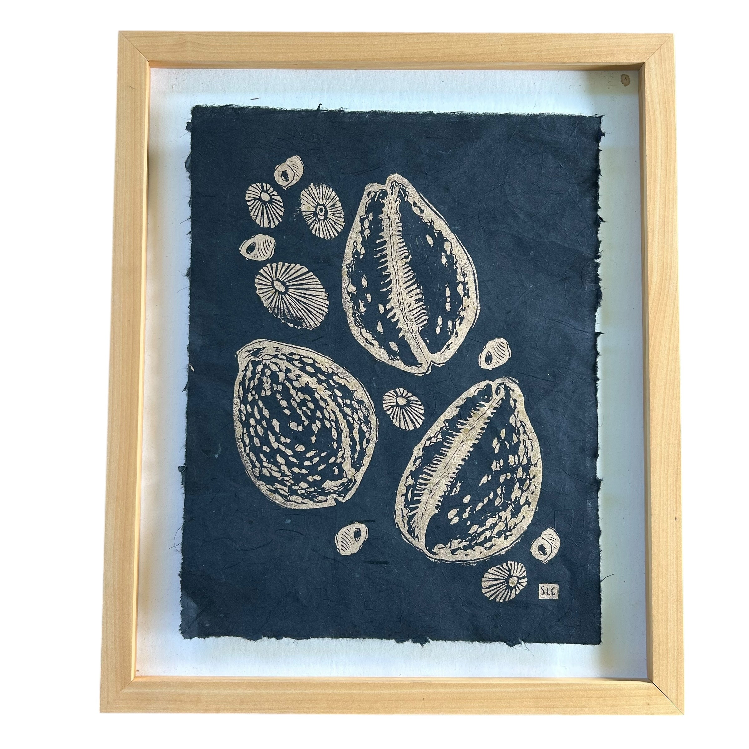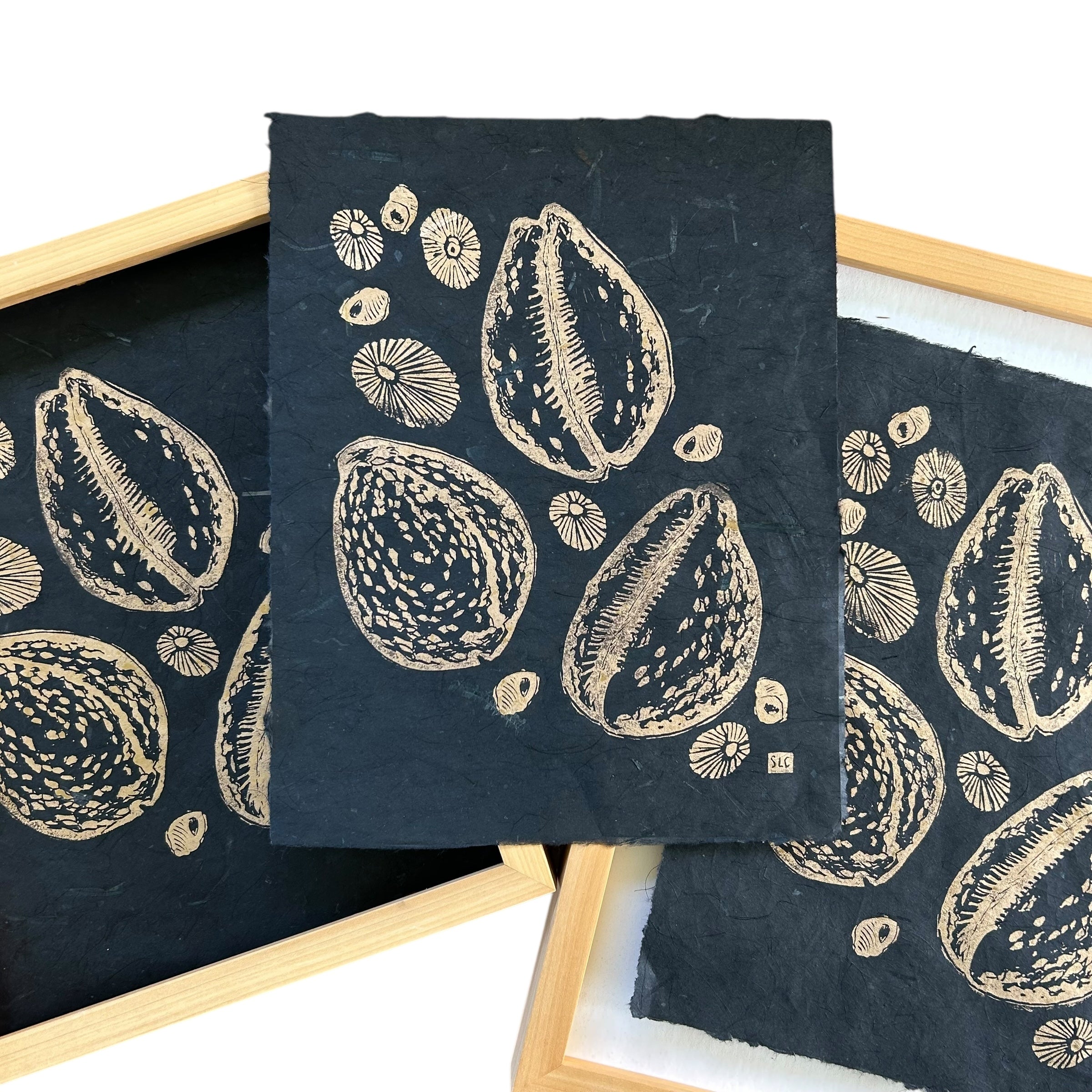 Printed on 11”x14” Black Banana Papet with hand-torn edges using copper-based oil paint.