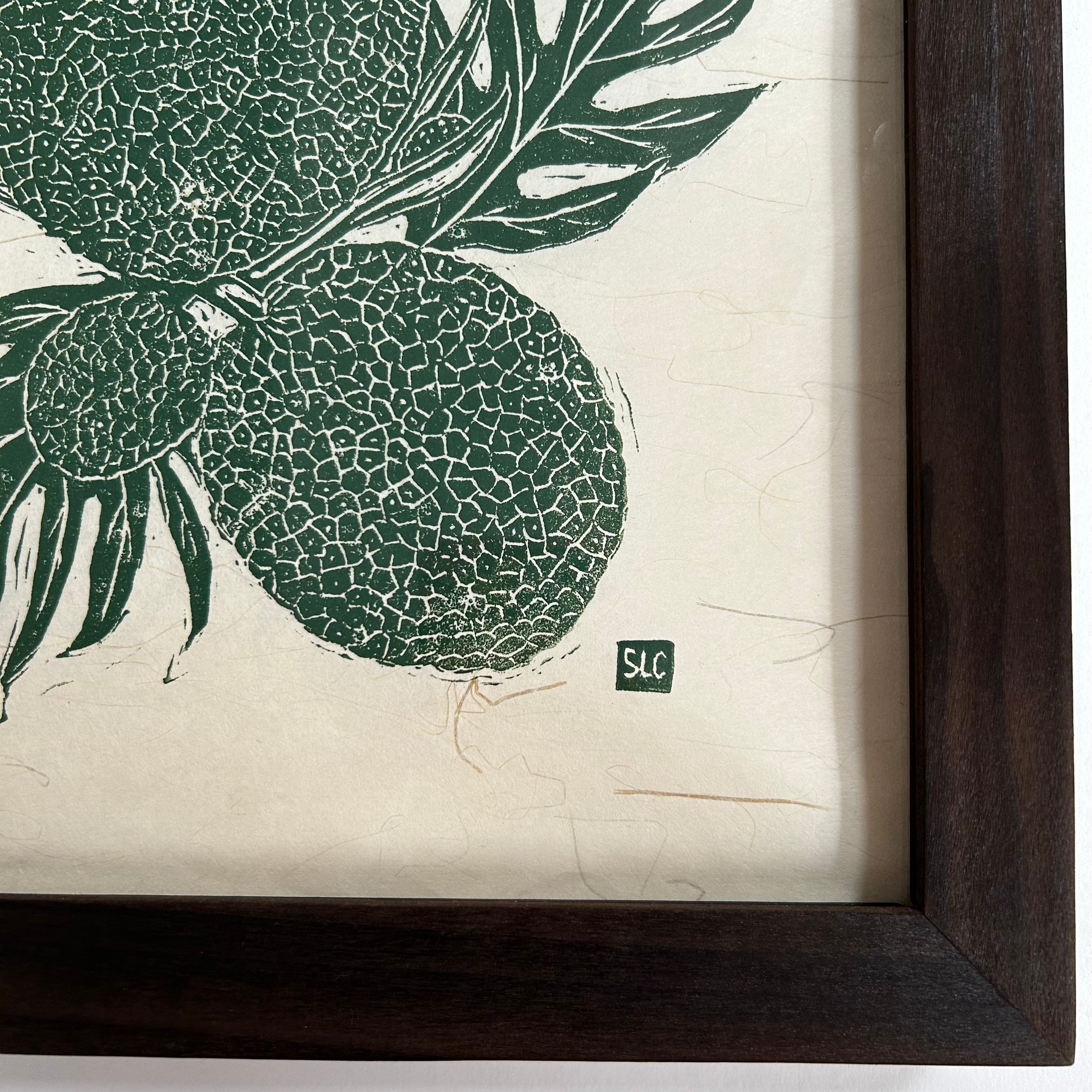 • Each piece is hand crafted and as so will differ both in print(pattern placement, stamp texture, etc...) and in frame finish(wood grain, stain tone, etc...)