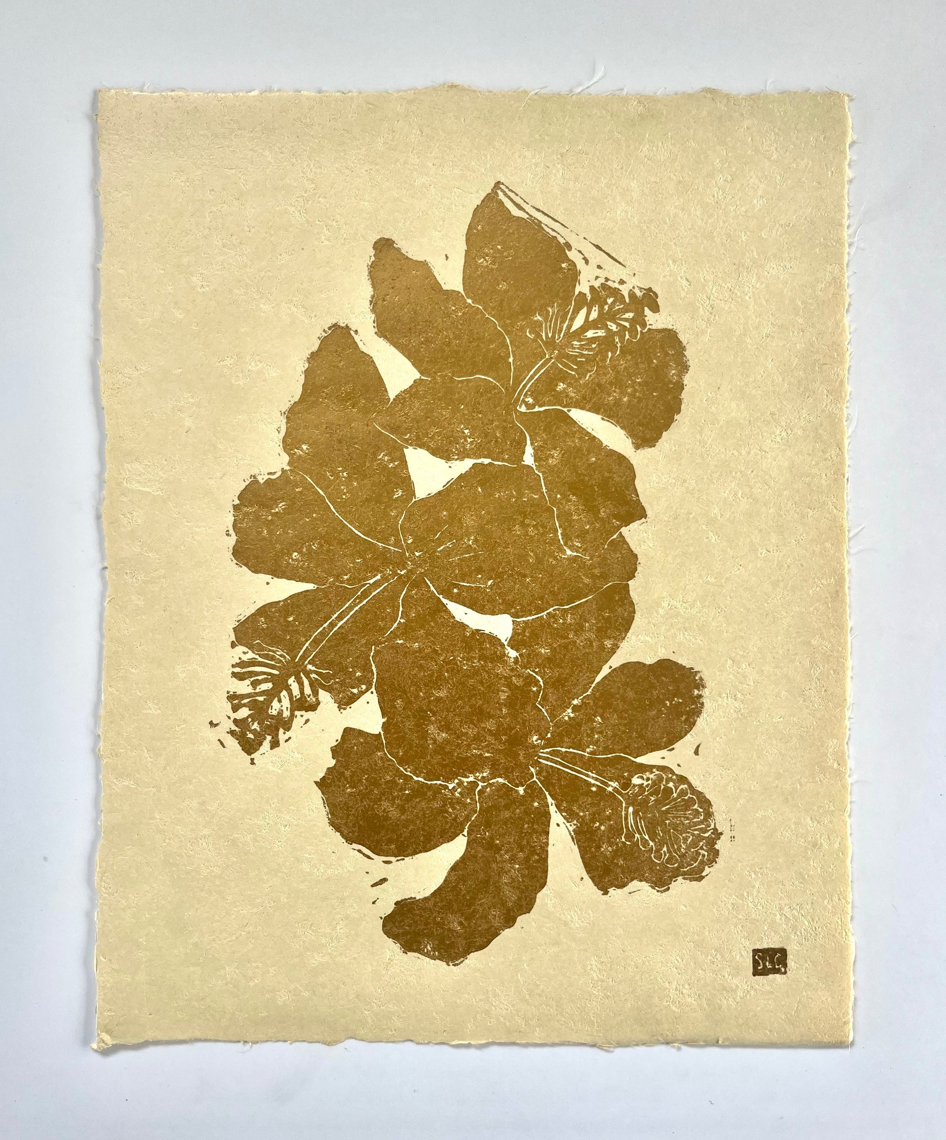 Printed on 11”x14” Cream Mayan Snake Plant Paper with hand-torn edges using archival oil paint.
