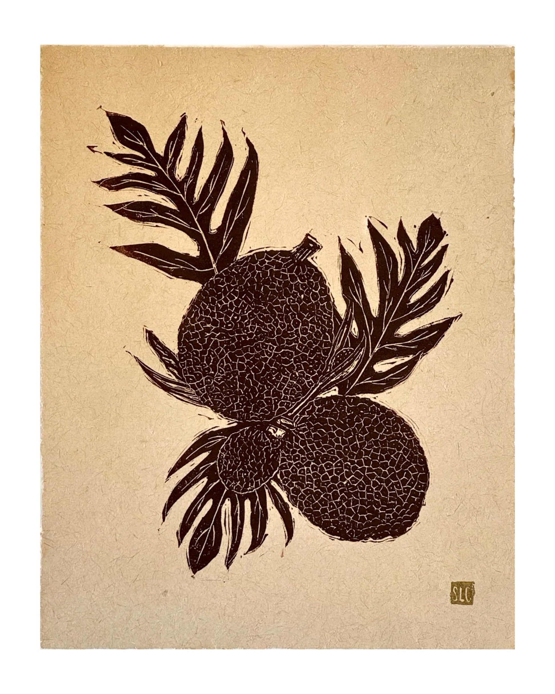 Printed on 11”x14” Cream Mayan Snake Plant Paper with hand-torn edges using archival oil paint.