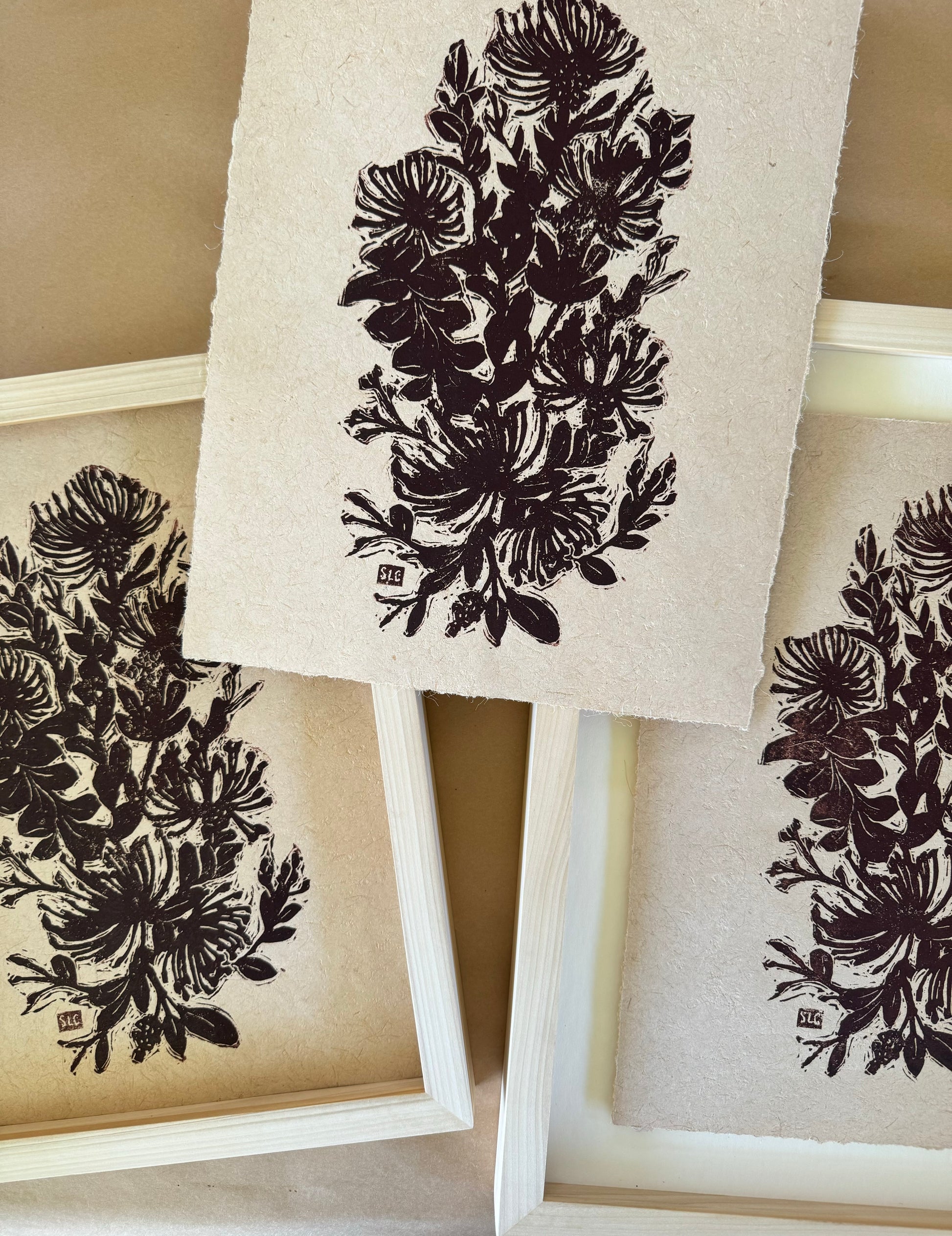 Printed on 11”x14” Cream Mayan Snake Plant Paper with hand-torn edges using archival oil paint.